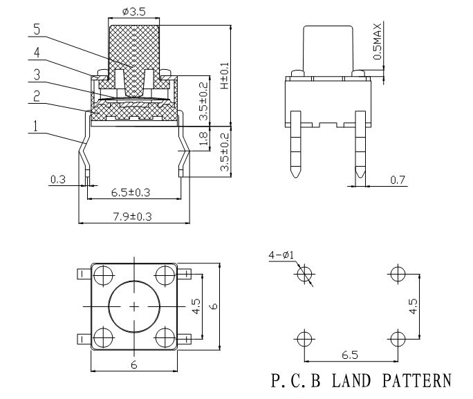 MIKROSVITČS IZSLĒGTS-(IESLĒGTS) 50mA / 12VDC kvadrātveida 6x6mm, h=7mm