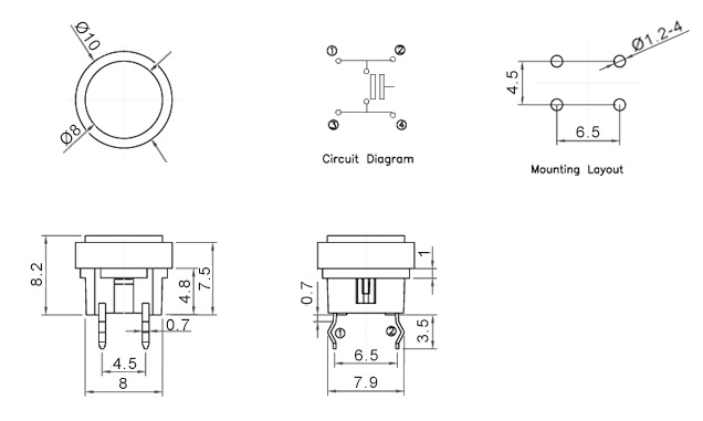 MIKROSLĒDZIS IZSLĒGTS-(IESLĒGTS) 12V 0,05A apaļš 10mm melns