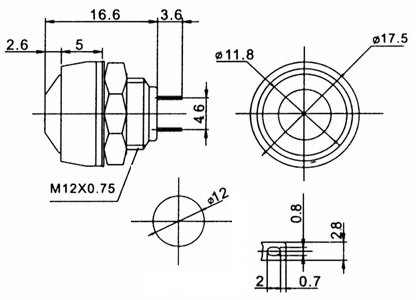 PUSH BUTTON SWITCH OFF-(ON) 1A 250VAC sarkans