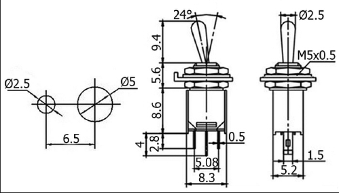 PĀRSLĒGŠANAS SLĒDZIS MTSN102, 1A 250VAC, ON/ON mini