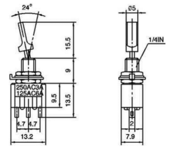 PĀRSLĒGŠANAS SLĒDZIS 3A 250V, 6a 125VAC, 3pin, ON-ON