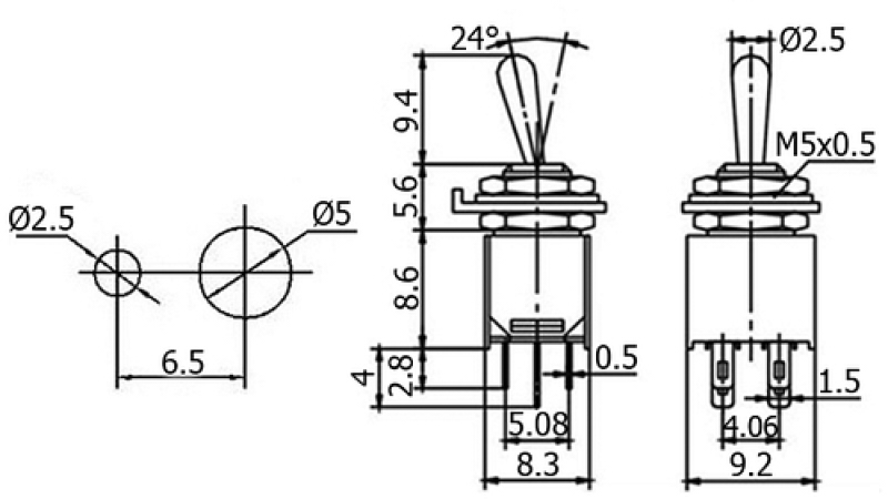 PĀRSLĒGŠANAS SLĒDZIS MTSN203 3A 125V 1,5A 250V, 6 kontakti, 2x IESLĒGTS-IZSLĒGTS-IESLĒGTS