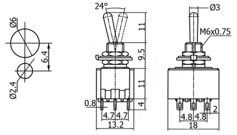 6A 125VAC; 3A 250VAC