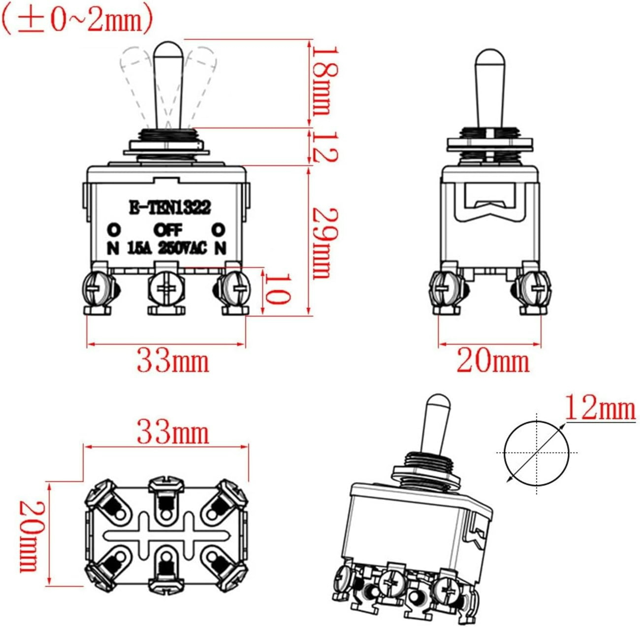 ,2 mm Pārslēgšanas pozīcijas: 2 pāru kontakti ON-OFF-ON