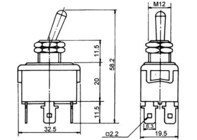 DPDT·Montāžas veids: paneļa