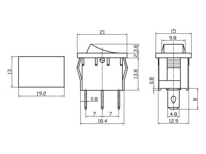 ROCKER SWITCH 6A/250V IESLĒGTS-IZSLĒGTS-IESLĒGTS