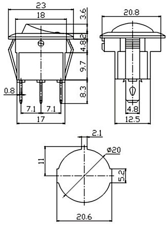 ROCKER SWITCH ON-OFF 12V DC 20A, ar zilu punktu indikāciju / ø20mm