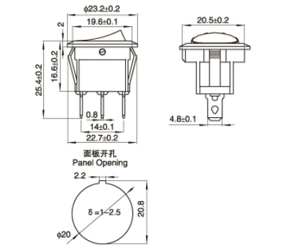 ROCKER SWITCH ON-OFF 12V DC 20A, ar sarkanu punktu indikāciju / ø20mm