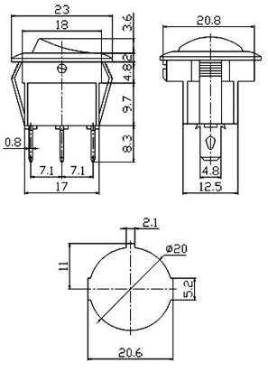 TAUSTIŅU SLĒDZENS 16A12VDC, ar oranžu indikāciju / D20mm caurums, IESLĒGTS-IZSLĒGTS