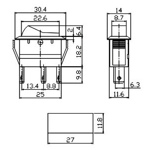 ROCKER SWITCH 20A 12VDC, melns, 14x30mm /11,8x27mm, ON-ON