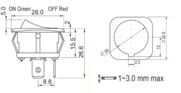 ROCKER SWITCH 10A 12VDC, ar LED apgaismojumu, ON-OFF