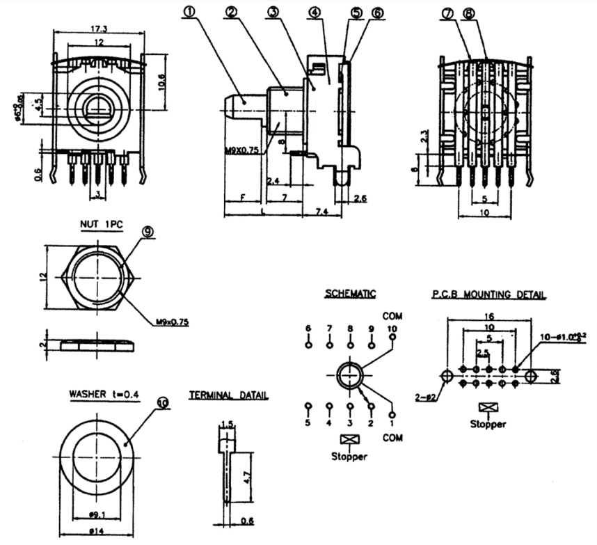 ROTĀCIJAS SLĒDZIS 6pin x1way, 0,3 A/ 16VDC, PCB, vertikāls