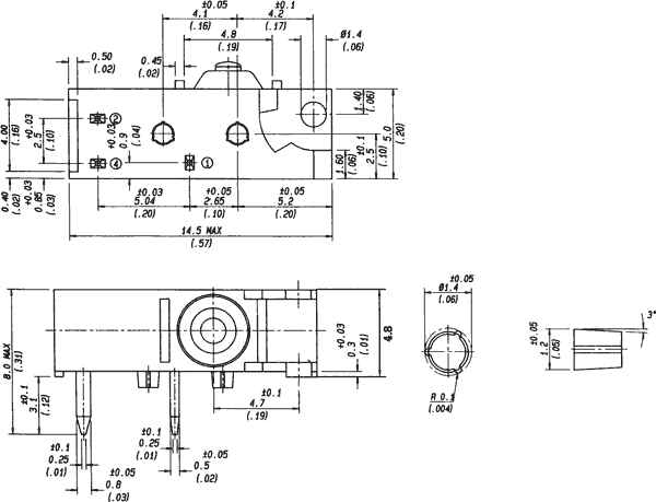 MIKROSLĒDZIS IESLĒGTS (ON), 1 A/250 VAC, 14,5 x 4,8 x 5 mm