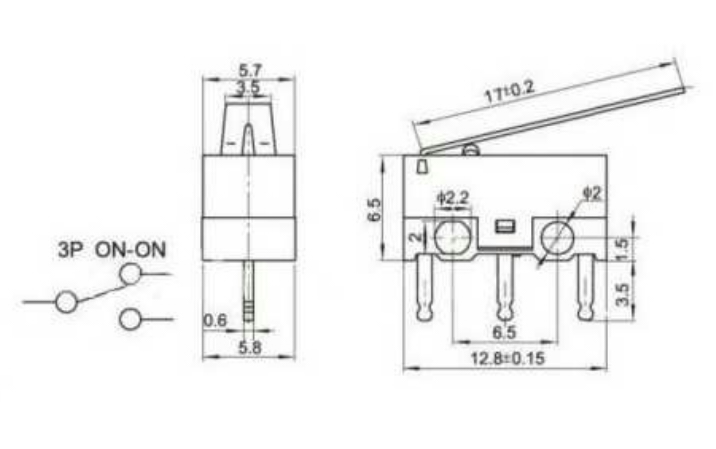 MIKROSLĒDZIS ON-(ON) ar 17 mm sviru, 1 A/125 VAC, 13 x 10 x 6 mm