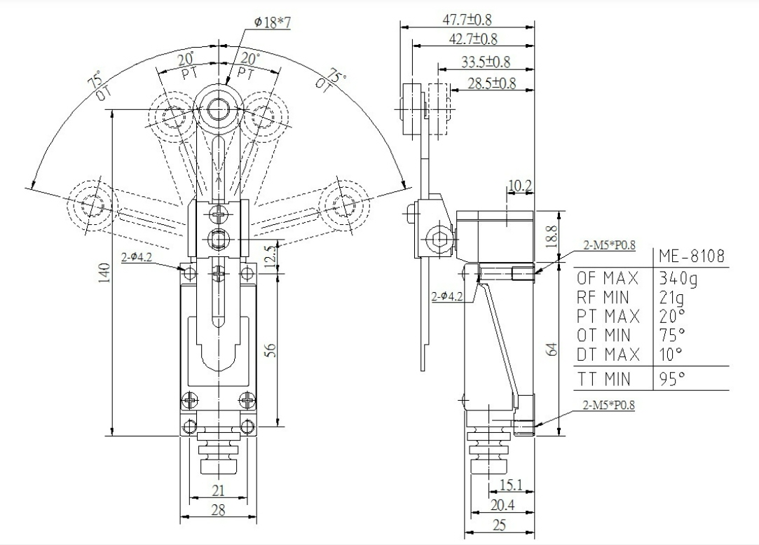 LIMIT SWITCH 5A 250VAC, 0.4A 115VDC, ME-8108 ar regulējamu sviru