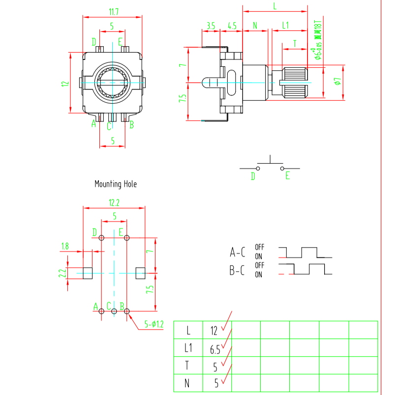 garums 12mm Korpusa izmēri 11,7x13,75x6