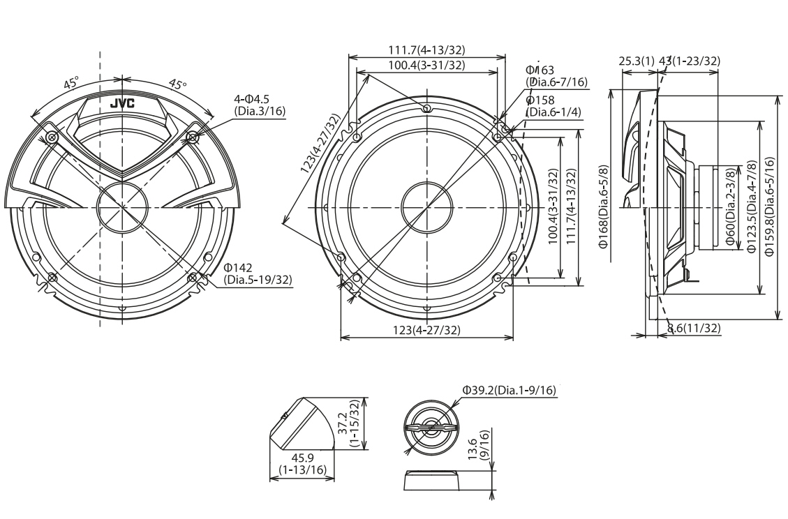Automašīnu skaļruņi, 4Om 300W, 35...22000Hz 92dB, 160mm, JVC CS-JS600, komplekts