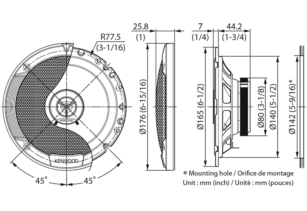 Automašīnu skaļruņi, 4Om 300W, 35...22000Hz 89dB 165mm, ar resti, KENWOOD KFC-S1766, komplekts
