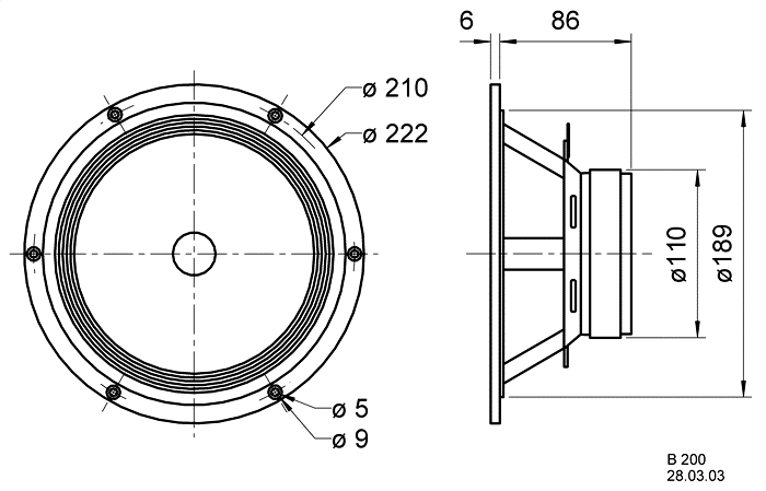 PILNA DIAPAZONA SKANDAS B200 6Ω, Visaton