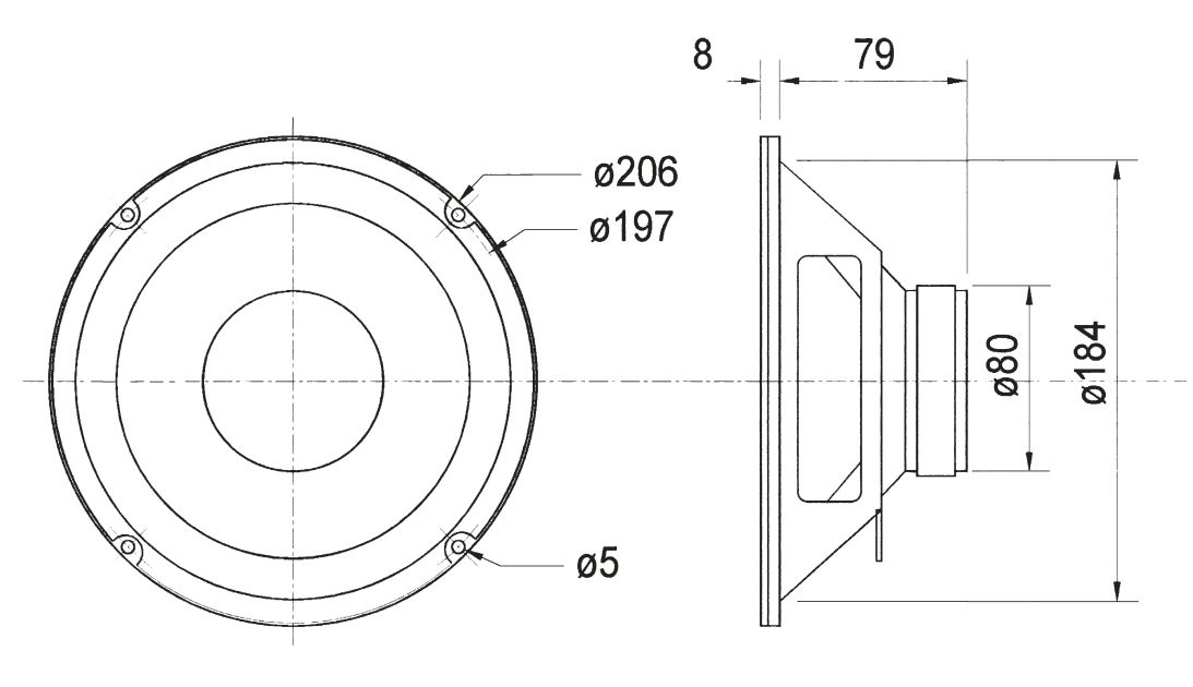 20 cm (8") zemfrekvences skaļrunis ar ļoti labu cenas un kvalitātes attiecību. Piemērots vienkāršām 2-ceļu skaļrunīm un automašīnu aizmugurējo plauktu sistēmām. Īpaši piemērots kā rezerves skaļrunis daudzām HiFi skaļrunīm.