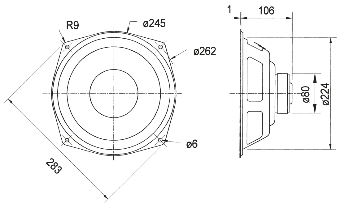 25 cm (10") zemfrekvences skaļrunis ar pārklātu papīra membrānu, gumijas malu un pagarinātu aizmugurējo polu plāksni garām svārstībām. Pateicoties groza konstrukcijai, tas ir īpaši piemērots kā rezerves zemfrekvences skaļrunis daudziem standarta HiFi skaļruņiem.