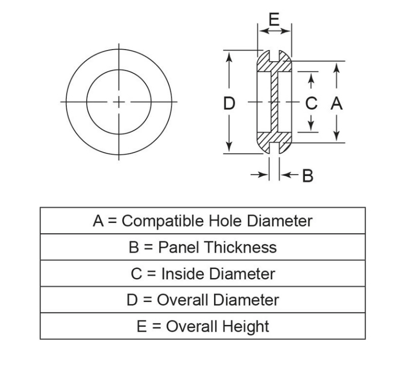 GROMMET PVC, D=16 mm / caurums 19 mm, paneļa biezums maks. 1,6 mm