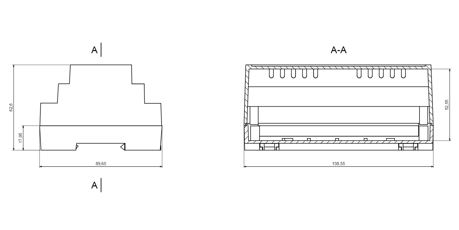KORPUSS 137x90x66mm Z-104, ABS, 8 moduļi pa 17mm katrs