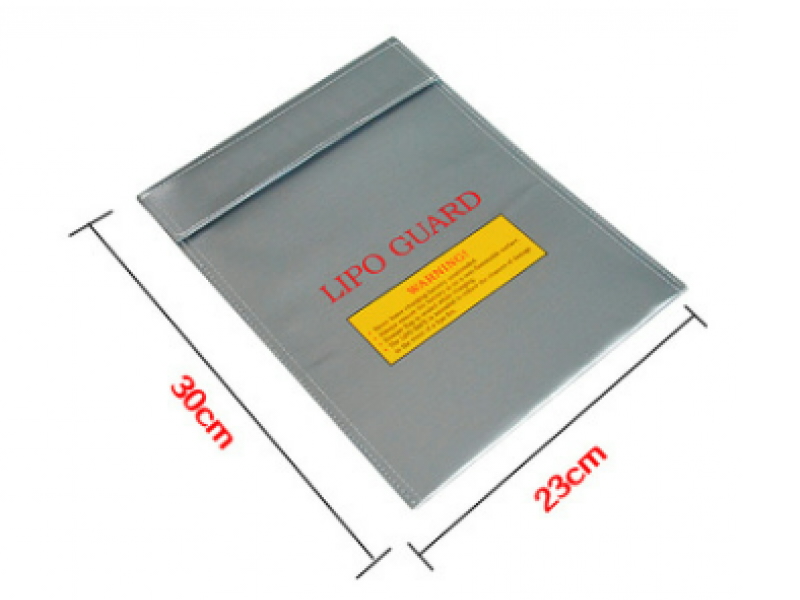 Lai nodrošinātu papildu drošību un aizsargātu sevi un vidi, LiPo baterijas, kad tās netiek izmantotas**, vienmēr** glabājiet šajā uzglabāšanas aploksnē.