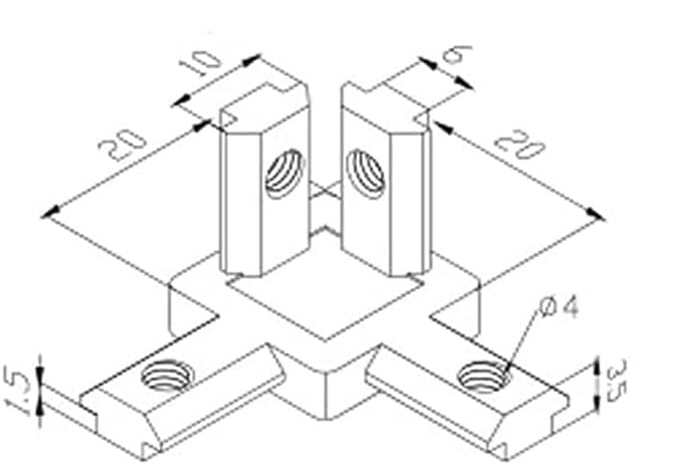 * 2020 sērijas alumīnija T-veida profilu savienošanai noteiktos leņķos.