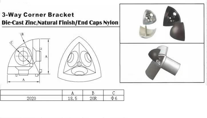 * 2020R sērijas alumīnija T-veida rāmju profilu savienošanai noteiktos leņķos