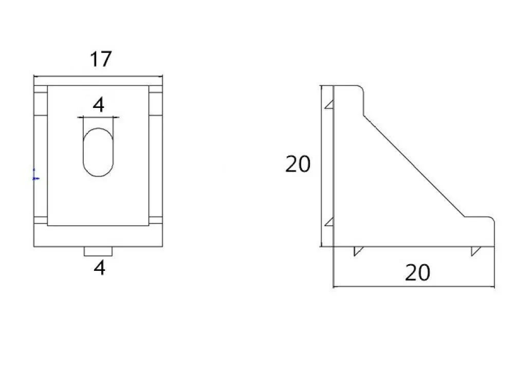 Stūra kronšteins 20x20x17mm, 2020, M4