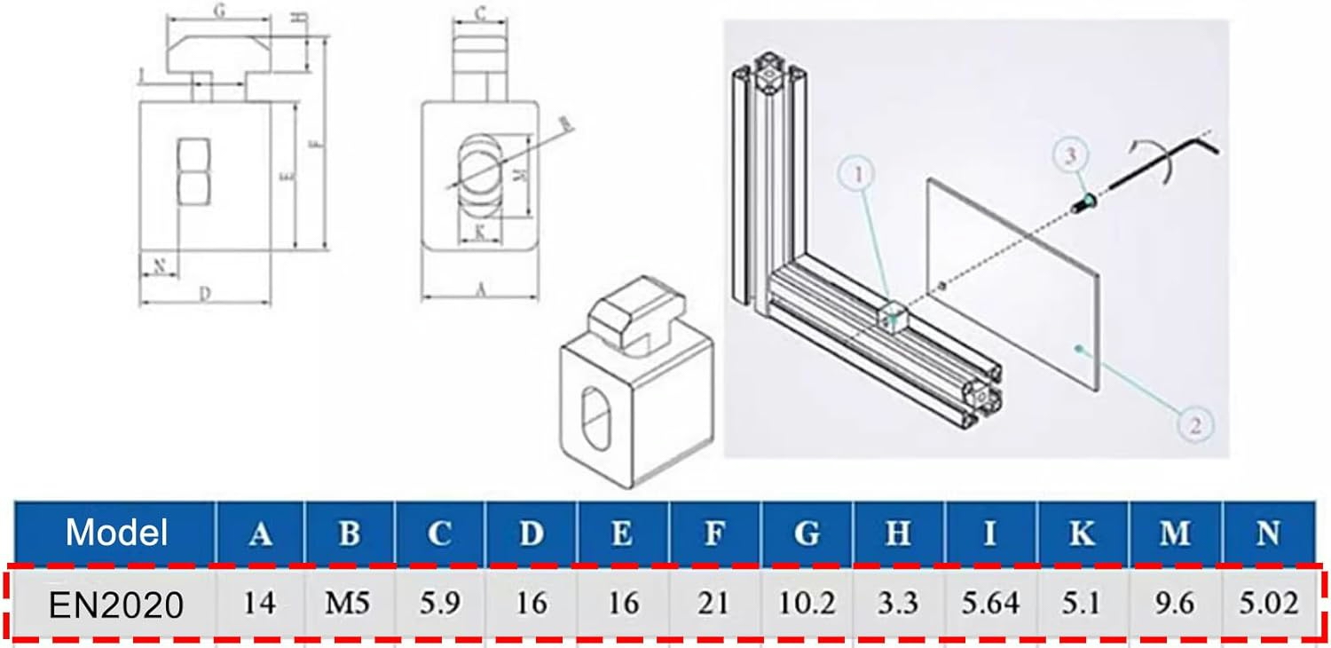 Caurspīdīgs bloks ar skrūvi alumīnija profilam 2020