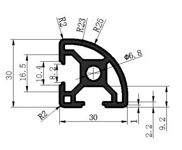 Kvadrātveida alumīnija profils SLOT8 30 x 30 mm ar noapaļotām malām