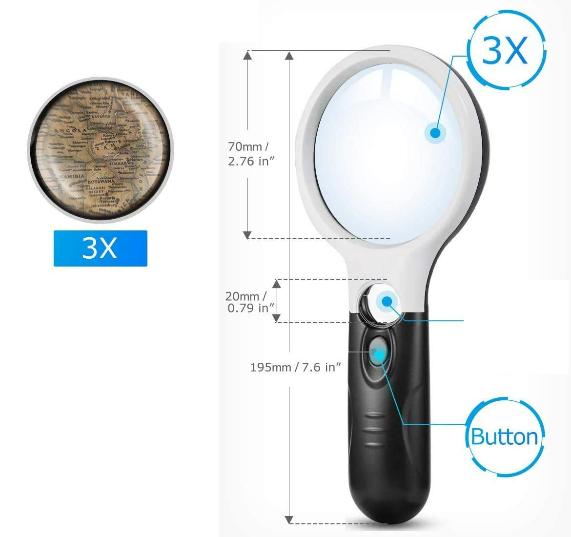 3X lēca ir piemērota lasīšanai, kartografēšanai, rokdarbiem, hobiju izsekošanai, izpētei.