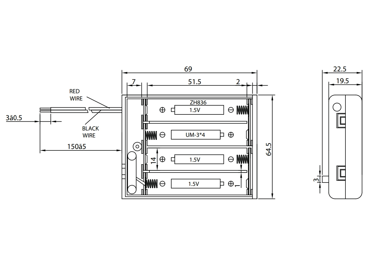 BATTERY HOLDER-ENCLOSURE 4x AA / 4x R6 baterijām, baterija ar slēdzi
