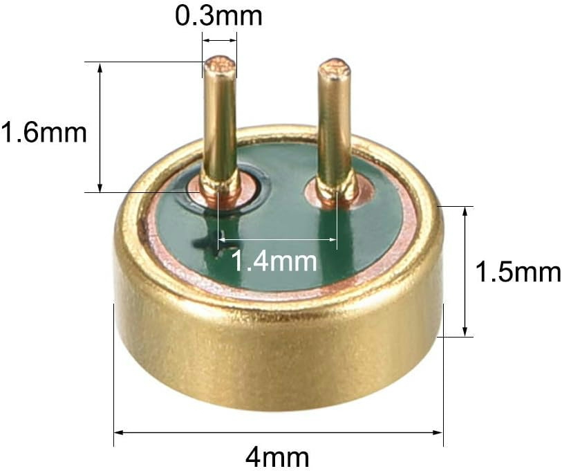 📐 Tehniskie parametri* 📏 Izmēri: 4 mm (diametrs) x 1,5 mm (augstums) * 🔊 Jūtība: -40 ±2 dB * ⚡ Darba spriegums: 2 V ~ 10 V DC * 🔌 Izvades pretestība: ≤2,2 kΩ * 🔄 Frekvences diapazons: 20 Hz – 20 kHz * 📶 Signāla un trokšņa attiecība (SNR): ≥ 60 dB * 📌 Pinu tips: taisni metāla pini * 🔧 Montāža: caurums PCB (THT)🧰 Lietojumi* 📱 Valkājamas ierīces * 📺 Viedtelevizori un tālvadības pultis * 🎮 Spēļu konsoles * 📡 Balss atpazīšanas sistēmas * 🤖 Mikroprocesoru bāzēti projekti✅ Priekšrocības* Mazs izmērs – ideāli piemērots kompaktiem dizainiem * Plašs frekvenču diapazons – precīza skaņas uztveršana * Viegla integrācija ar mikrokontrolieriem