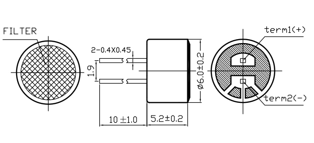ELEKTROSTATISKAIS MIKROFONS ø6x5,2 mm 2Kom 2V