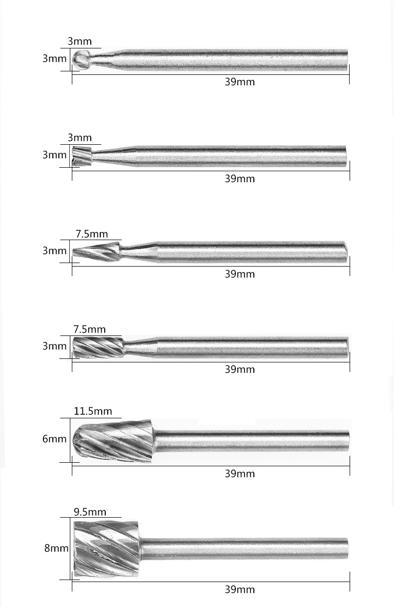 CNC volframa karbīda maršrutētāju komplekts, 6 gab.