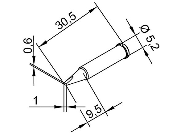 ERSADUR lodēšanas uzgalis, bez svina, i-TOOL, i-TOOL Nano, i-TOOL Pico lodēšanas dzelžiem 0100CDJ, 0120CDK, 0130CDK, kalta forma, 1 mm