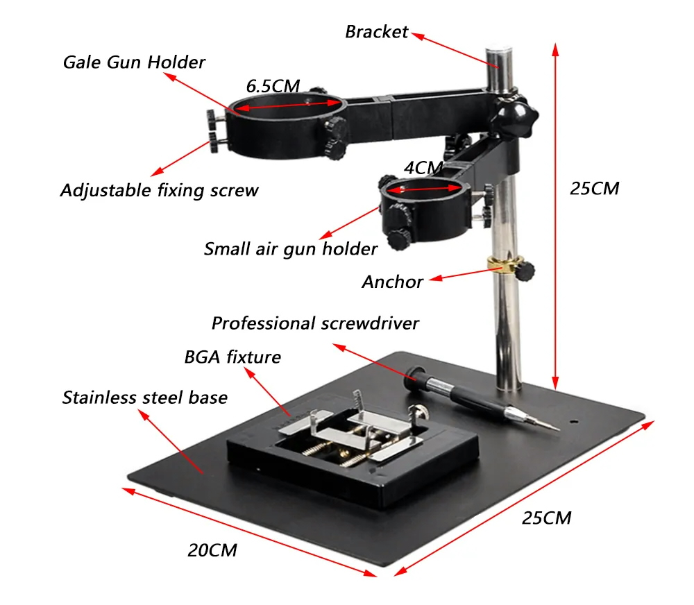 Montēts daudzfunkcionāls karstā gaisa lodēšanas dzelzs turētājs ar BGA stiprinājumu, piemērots klēpjdatoru, mobilo tālruņu un citu elektronisko produktu remontam