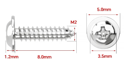 Pašvītņojošās skrūves ø2x8, galvas diametrs ø5mm, (servo SG90) / 20 gab.