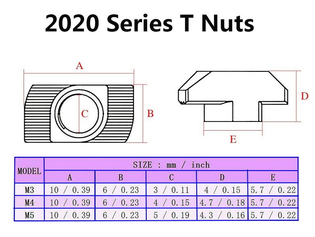 T slīdošā uzgriežņa cinkota M3, 2020 alumīnija profilam