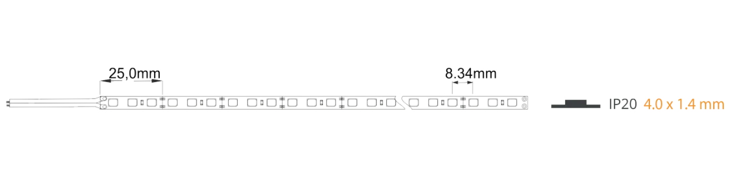 LED sloksne 12V 9,6W, 4000K (neitrāli balta), 2,5cm, platums 4mm, IP20, 1120Lm/m, 120LED/m, 40moduļi/m, CRI>80