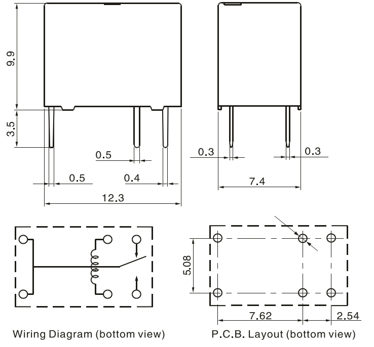RELĒ 12V 1A SPDT SANYOU 12,5x10x7,5mm