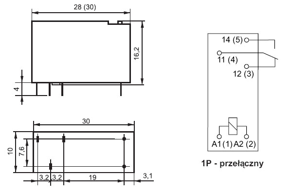 RELĒ 12V 8A/380V RM96P, ar vienu kontaktu