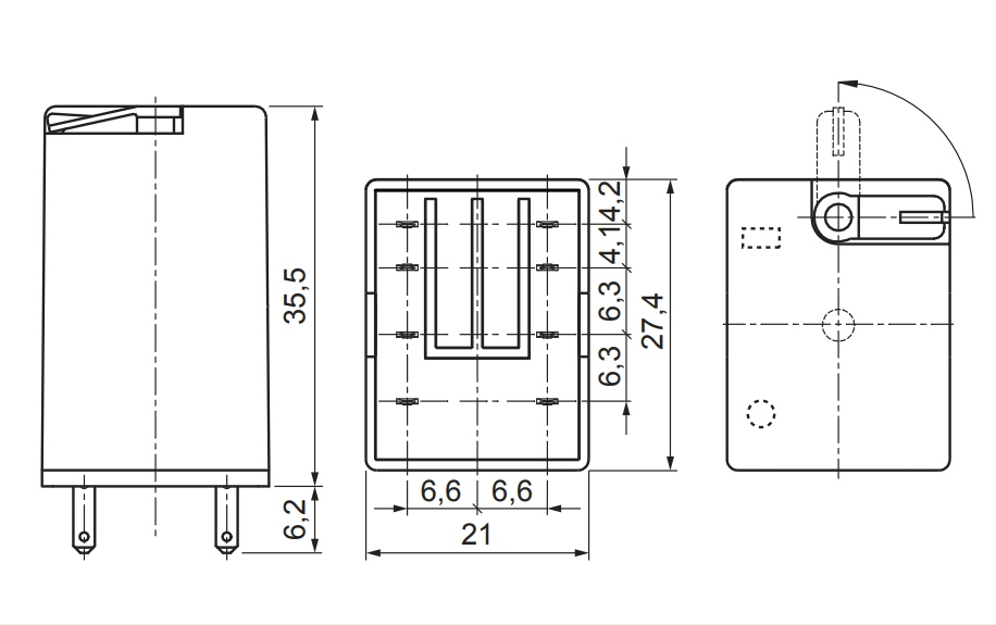RELĒ ~230V 1,6W, 10A/250V R2 rozetei, ar dubultu kontaktu
