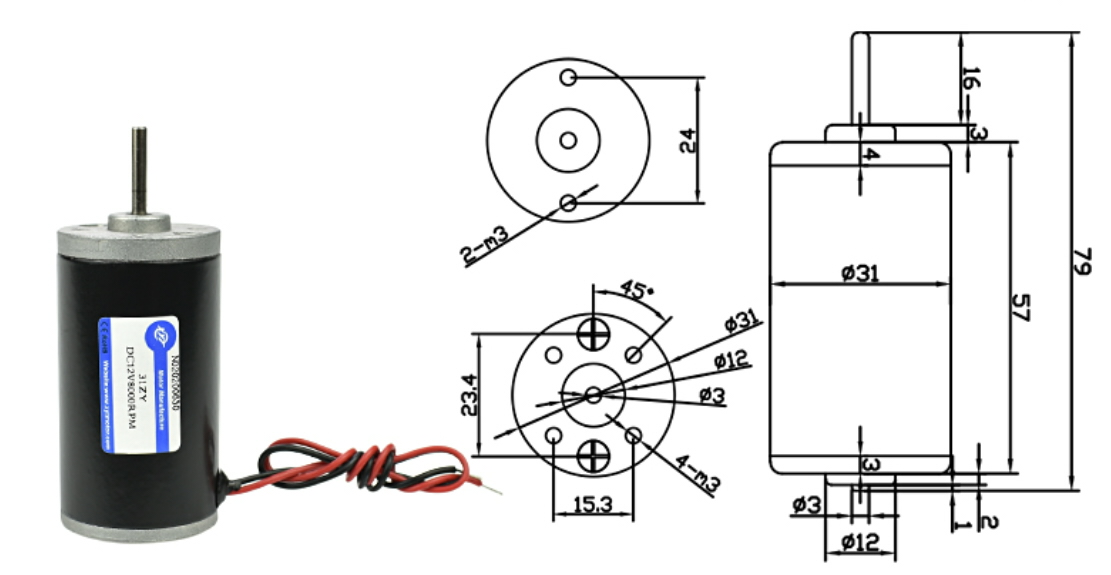 - Motora diametrs: 31 mm.