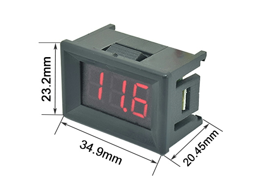 Voltmetro modulis 0,36 colio LED skaitmeninis, 3-jų laidų su įspraudžiamu korpusu