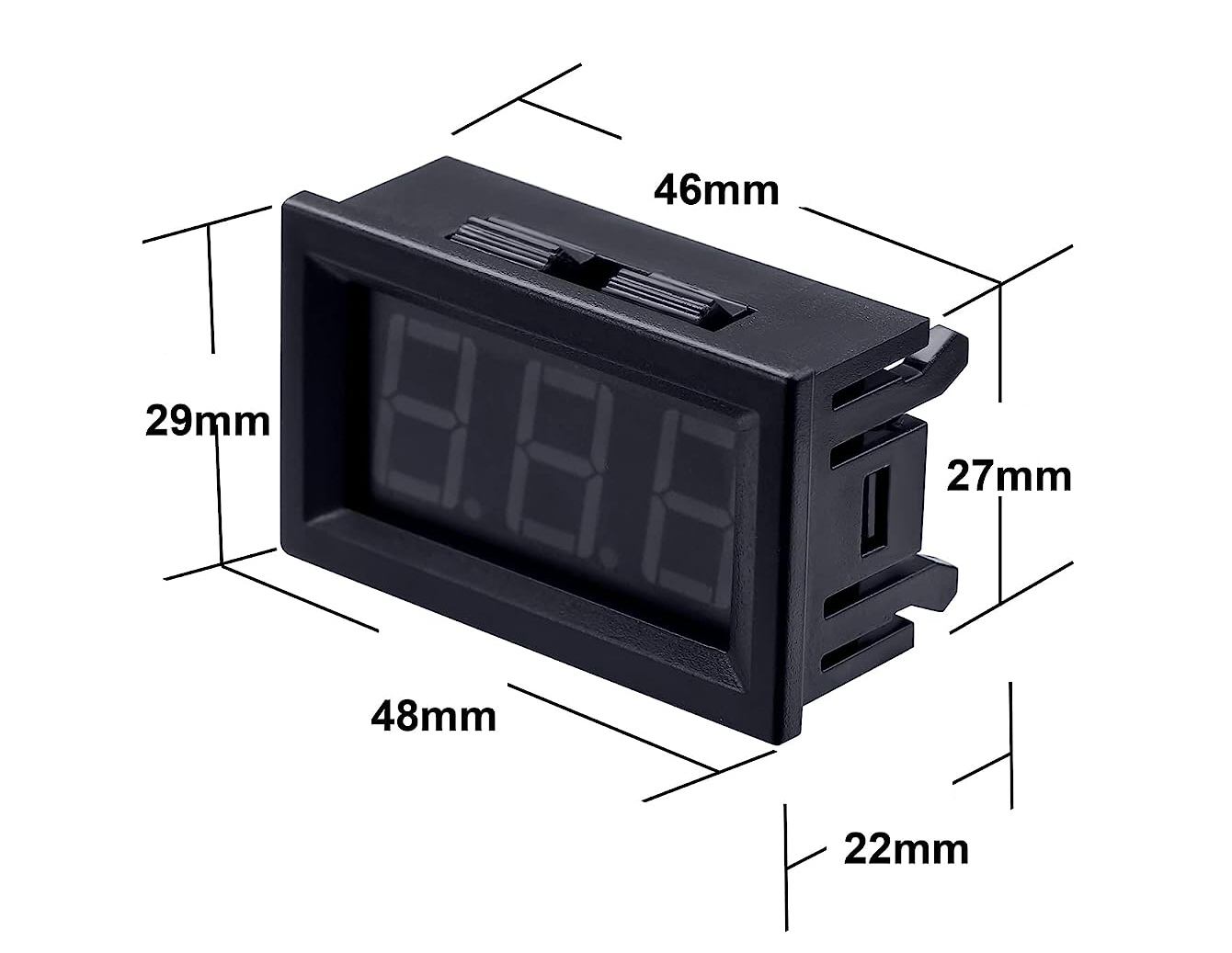 VOLTMETRAS - MODULIS 0.56" LED raudonas, DC 2.5-30V, su korpusu, 2 laidai