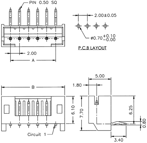 JUNGTIS 6pin kištukas 2mm, 1A 100V, lituojama kampu